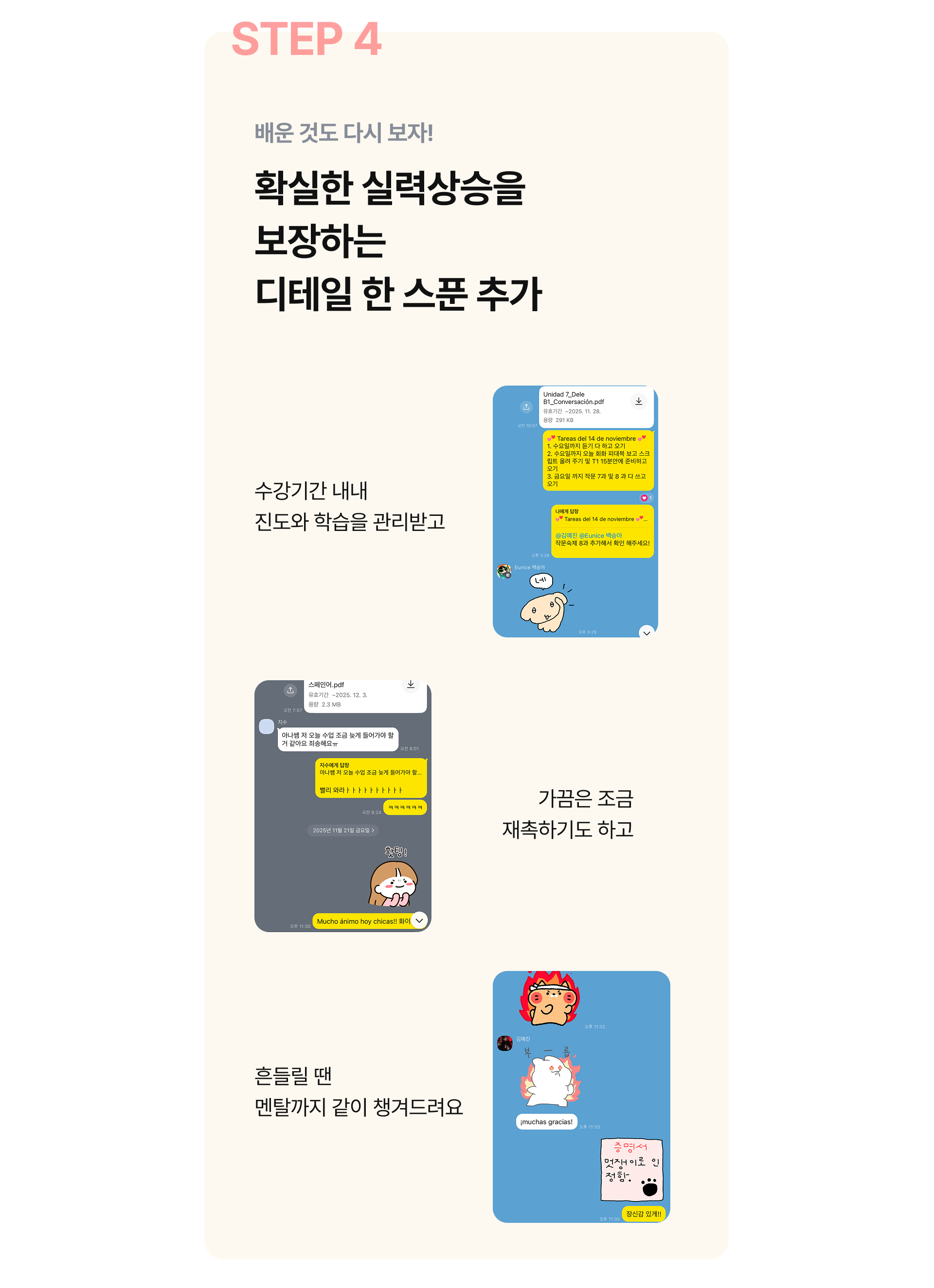 "수강 한달 만에 스페인어로 퀴즈를 내고 있더라구요 ㅎㅎ" - 수강생 Sol님 -
