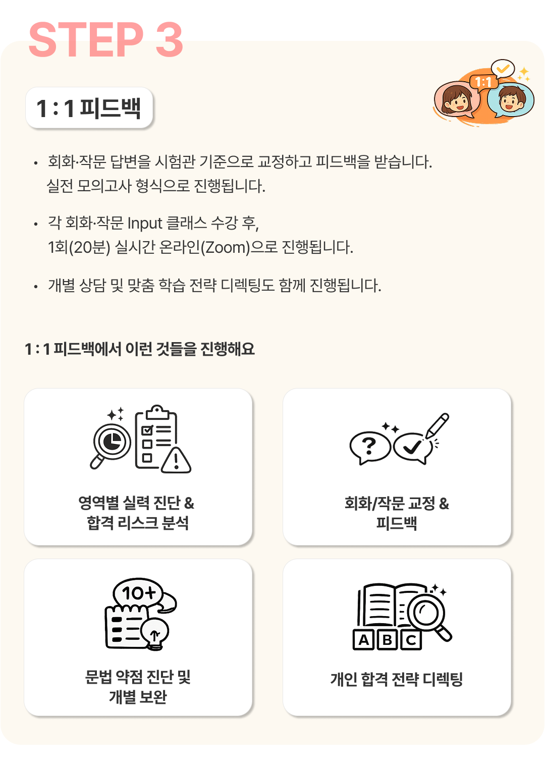 회화, 작문, 읽기, 듣기 전 영역별 합격전략과
