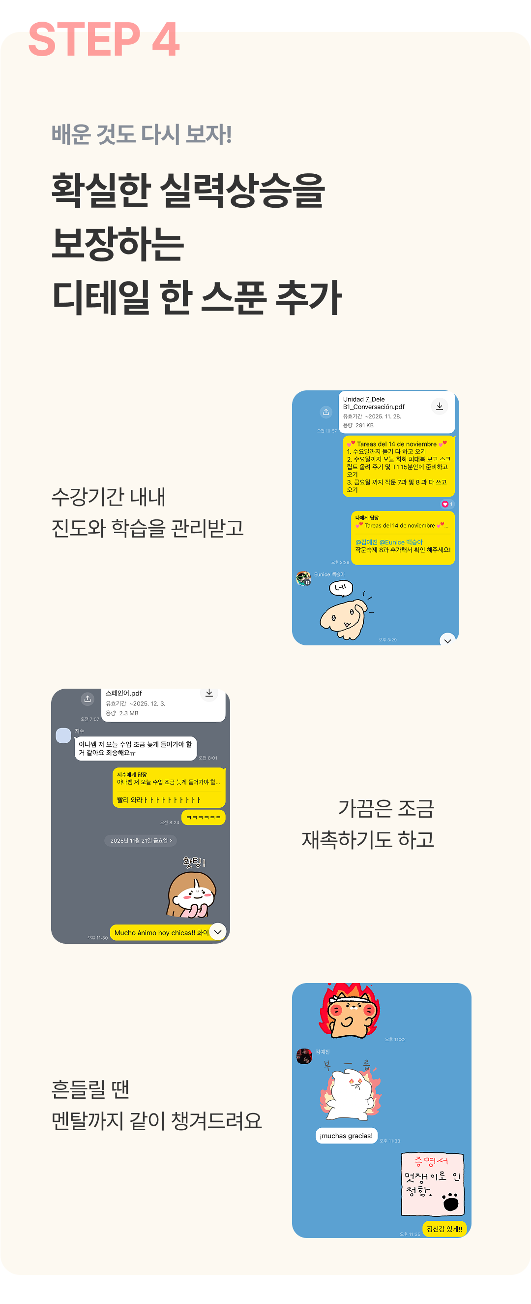 "원어민쌤이 앱을 통해 실시간으로 스페인어 질문을 해결해 주세요." - 수강생 Kelly님 -