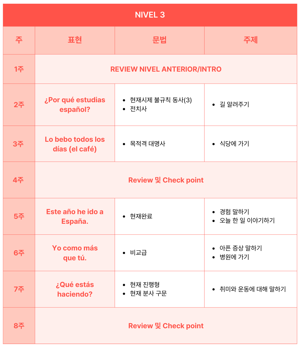 나의 NIVEL 3 커리큘럼
