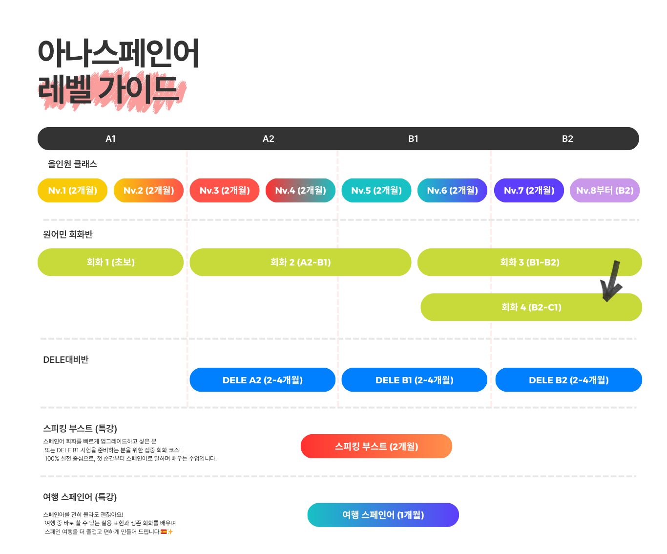 ※ 각 구간 마다의 레벨테스트를 통과해야 다음 레벨로 넘어갈 수 있어요.