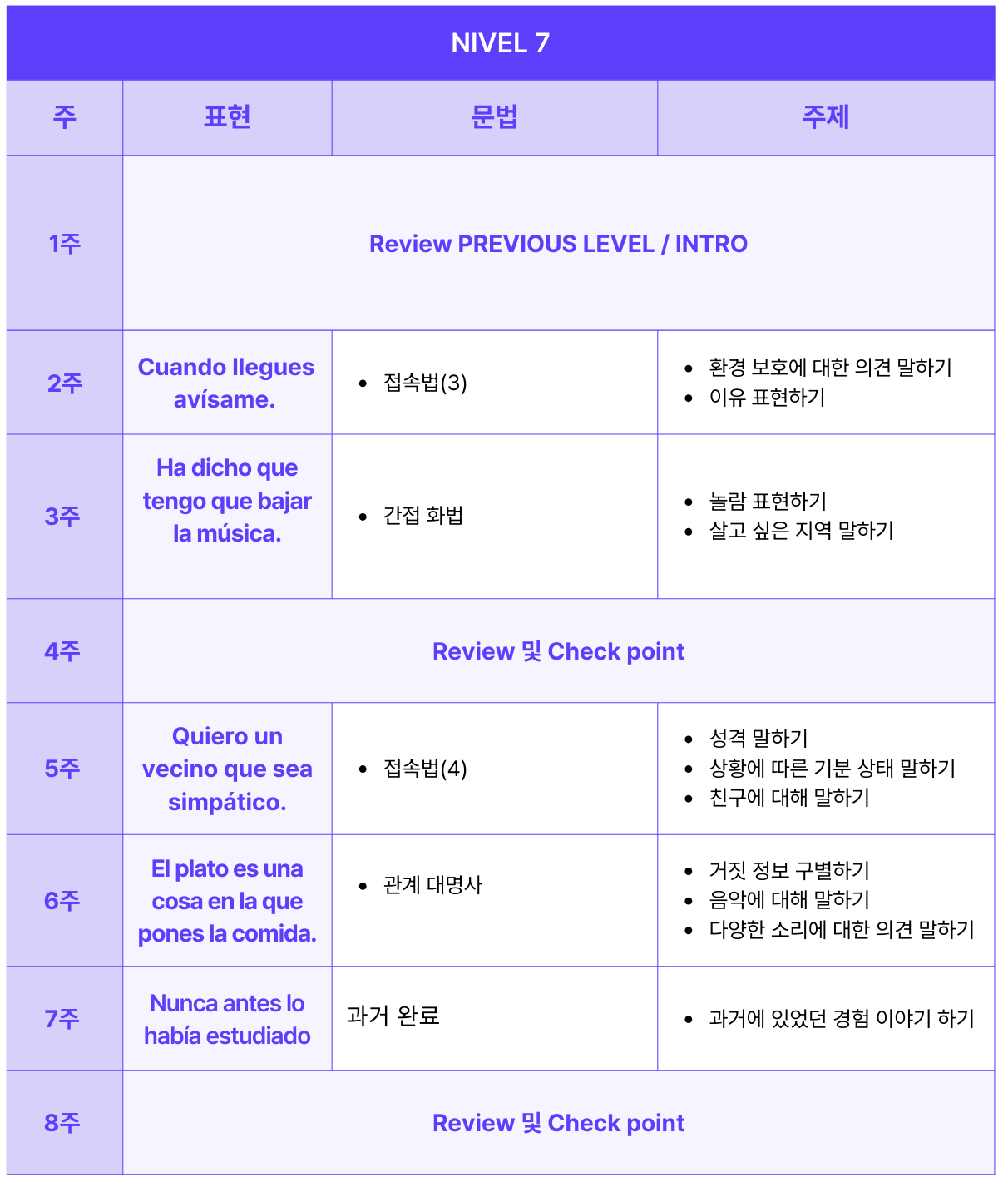 나의 NIVEL 7 커리큘럼